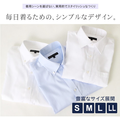 爽やかな大人の男を演出してくれるお洒落映え抜群ドレスシャツ♪ 程よくフィットし、しなやかなボディーラインを演出。 形態安定機能でシワになりにくく、お手入れも簡単楽々。 後ろ身頃にダーツを入れスマートに見え、大人のスタイルを叶えます。 単品としても着用でき、お仕事やおしゃれ着などの普段使いにもお楽しみいただけます。 スタンダードなデザインとカラーが ビジネスからパーティーシーンまで幅広く着用していただける1着です。 ○サイズ:サイズ画像参照下さい。 ○材質:綿100% ○生産国:インドネシア ○洗濯表示:洗濯機・ドライ可