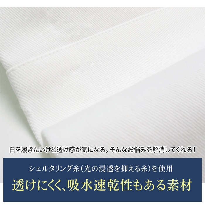 透けにくいので品のあるオフホワイトカラーを気軽に履ける。