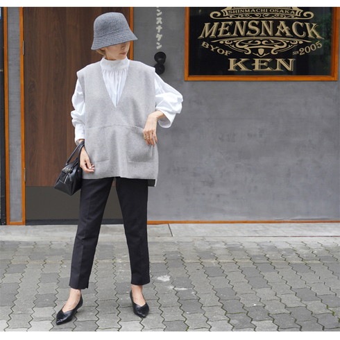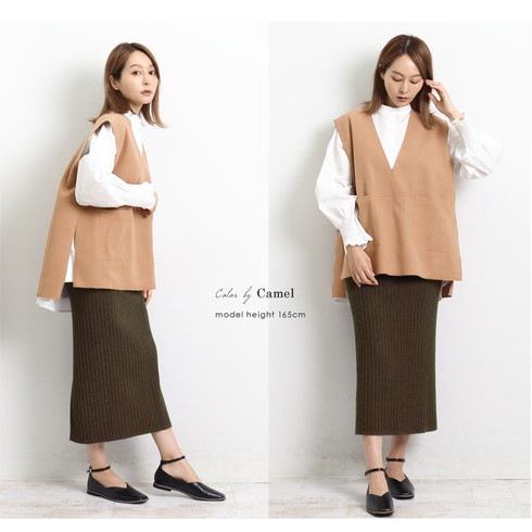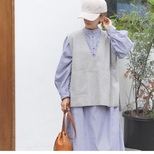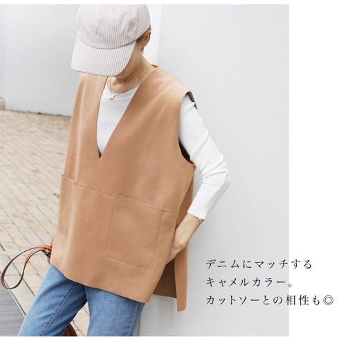 深Vネックジレベスト。