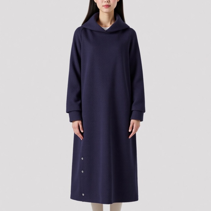 ゆったりとしたフード付きワンピースは2タイプから着丈が選べます。