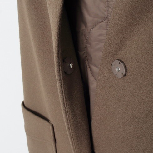 コートは大きめのパッチポケットが付いたシンプルなデザインながら