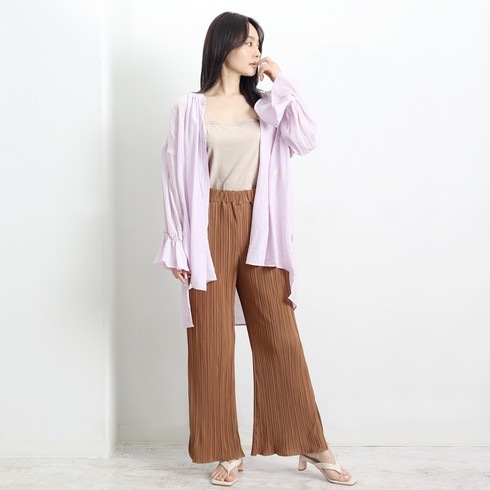 トップスとのバランスがよく広めに開けて抜け感のあるシルエットにも◎