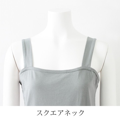 すっきりと空いたスクエアネックが
