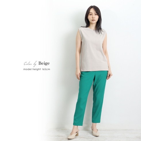 キレイに見える天竺編と柔らかなタッチが特徴のトップス。