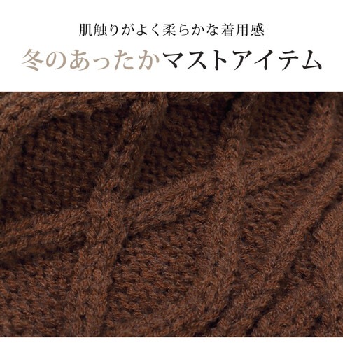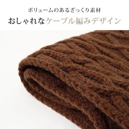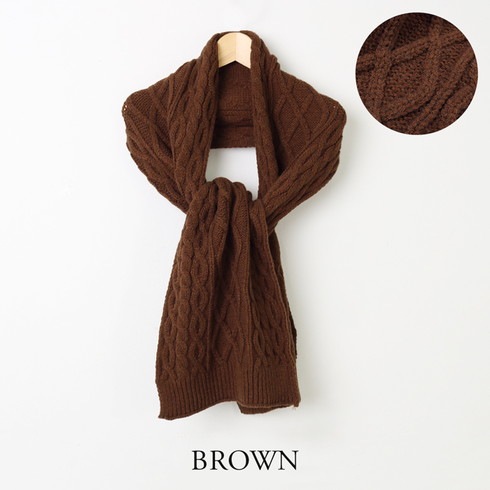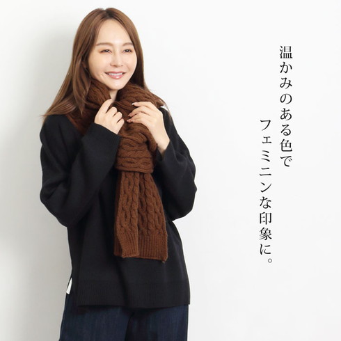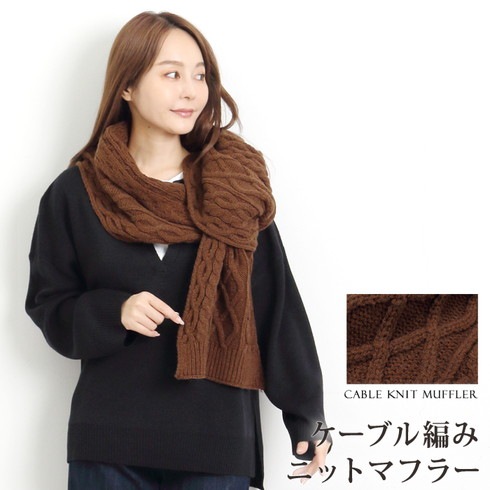 温もりのあるケーブル編みがアクセントになったマフラー。