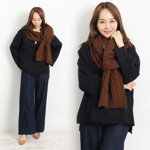 立体感のある柄編みはサッと巻くだけでニュアンス感をプラス。