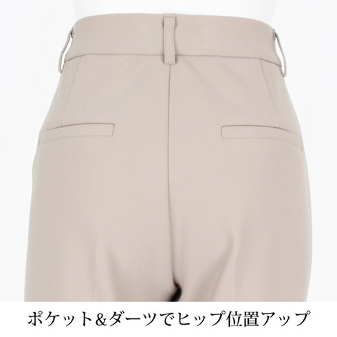後ろ飾り片玉縁ポケットによりヒップ位置を高く立体的に見せてくれます。