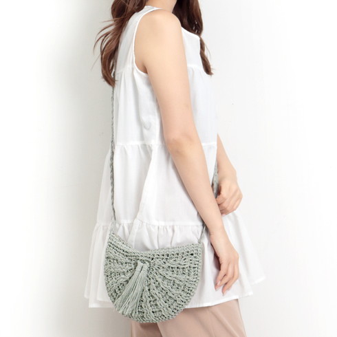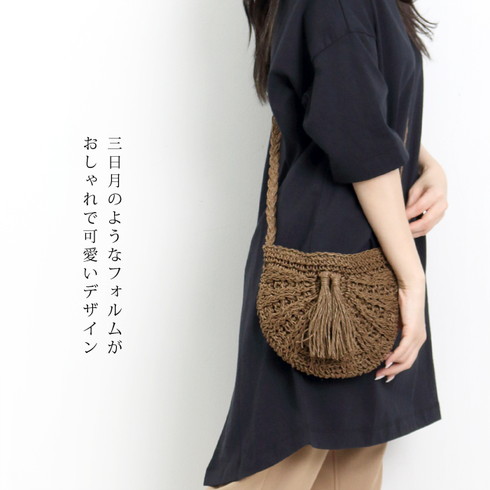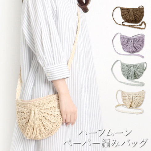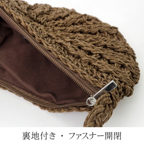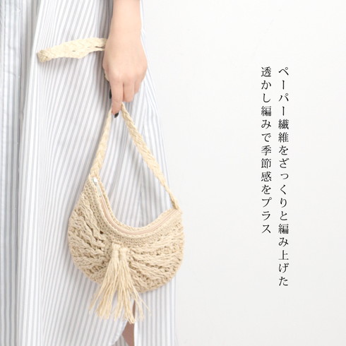 ナチュラルな色合いの編みバッグです。 ふわっとしたフリンジが大人かわいいを演出。 内布が付いているので網目に物が引っかからずノンストレスです。 ファスナー付きタイプなので安心感アップ! 毎日のスタイリングに合わせやすいカジュアルでシンプルなデザインです。 ○サイズ: 本体/(約)縦18×横25cm ショルダー長さ/(約)130cm (ショルダーベルト取り外し/不可) ○スペック: 開閉/ファスナー開閉 ○材質:分類外繊維(紙) ○重量:(約)110g ○生産国:中国