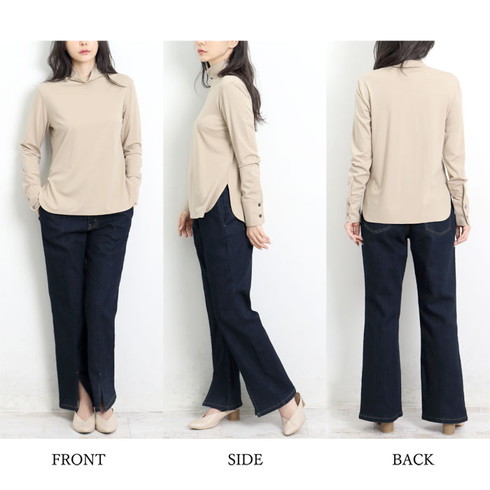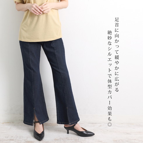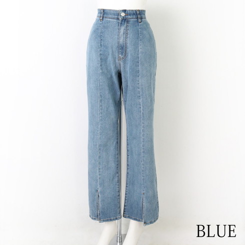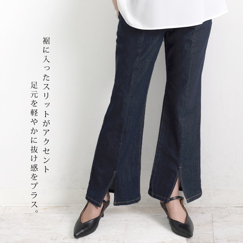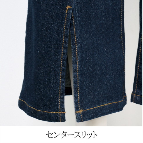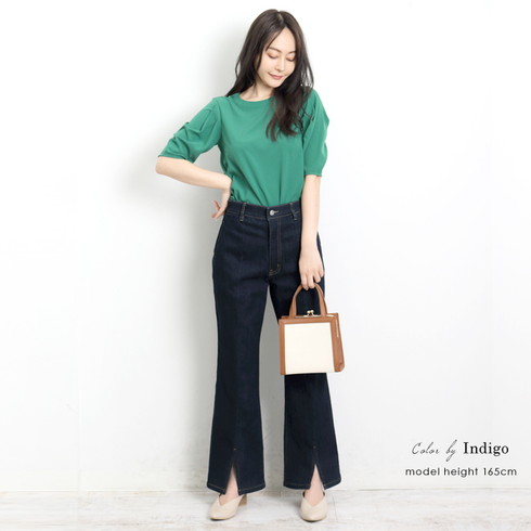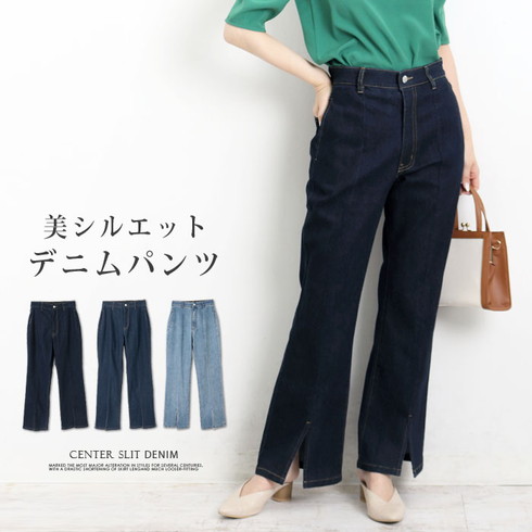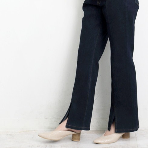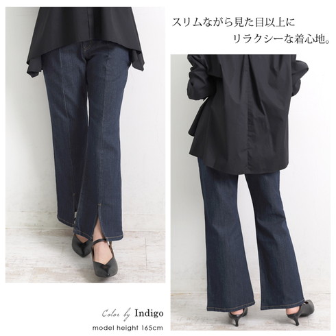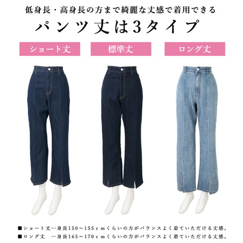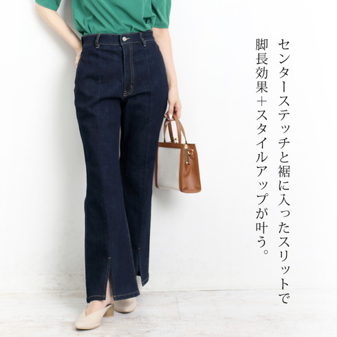 細身のデザインでセンターステッチが縦長効果も。