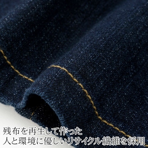 残布を再生した生地を使用した人と環境に優しいリサイクル繊維のデニム。