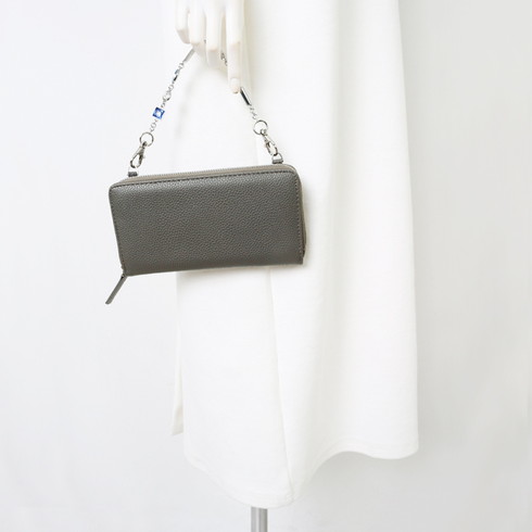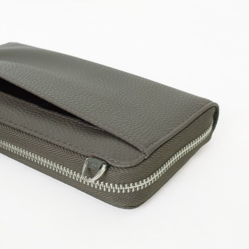 本革のようなシボ感のレザー調生地のスマートウォレット。