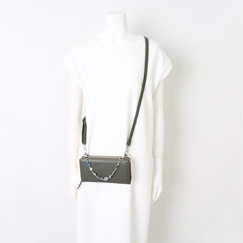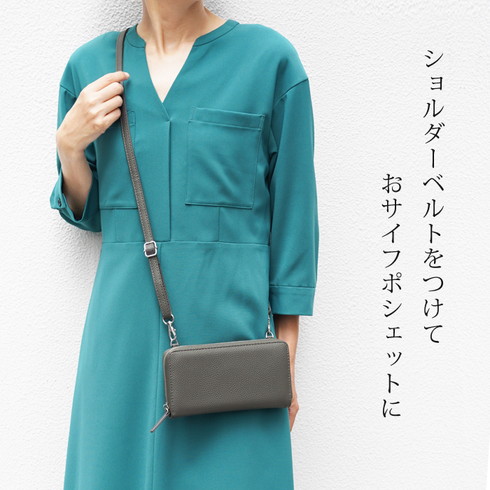 同素材のショルダーストラップの着脱可能です。