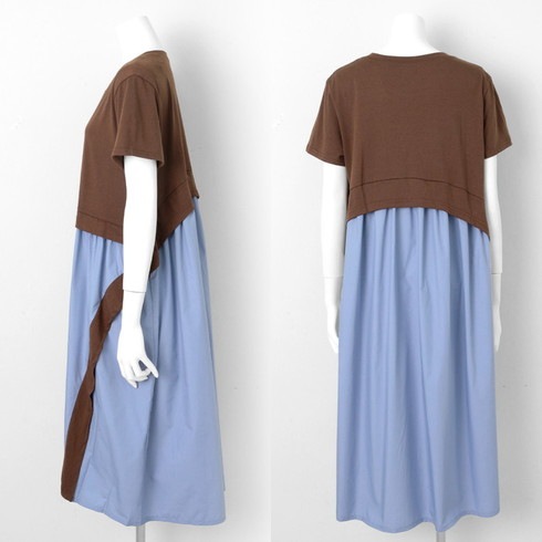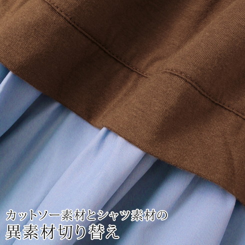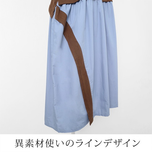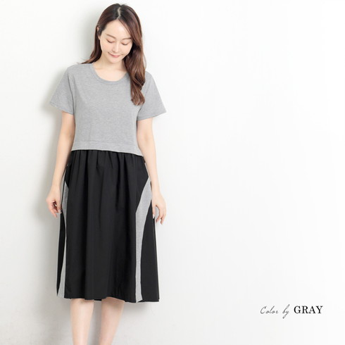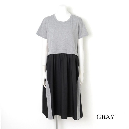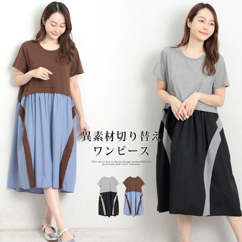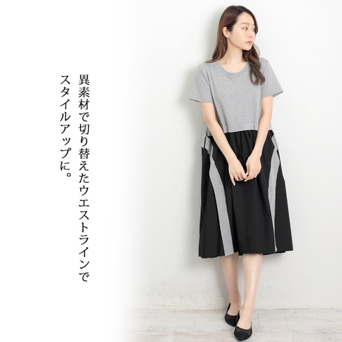 一枚着るだけでおしゃれな異素材切り替えワンピース。