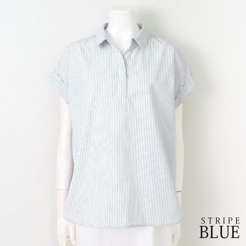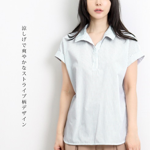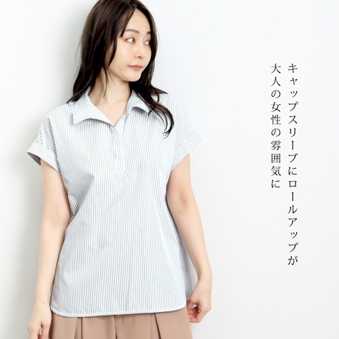 1枚でもこなれ感のある上品で爽やかなスキッパーブラウス。