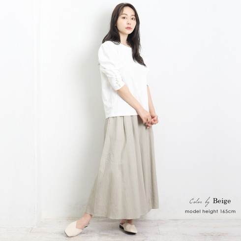 広がりすぎないシルエットが美脚効果にも◎