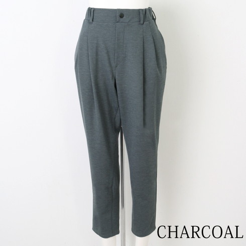 ヒップや太もも部分にたっぷりゆとりをもたせたツータックテーパードパンツです。