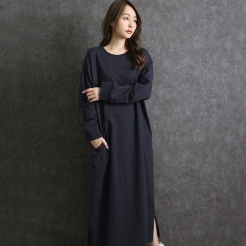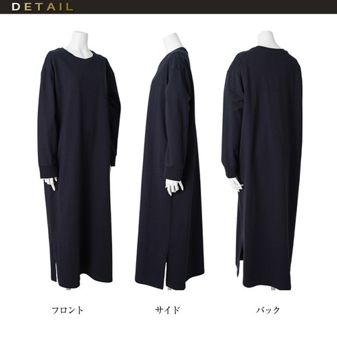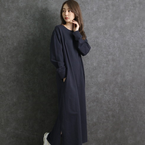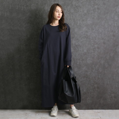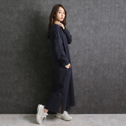 シンプルに仕上げたスウェットワンピースは