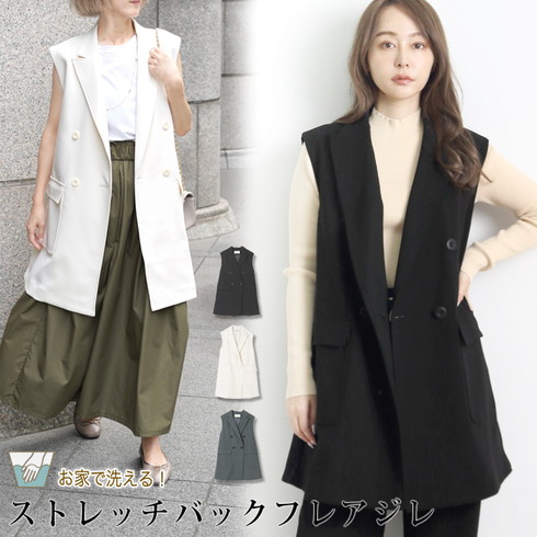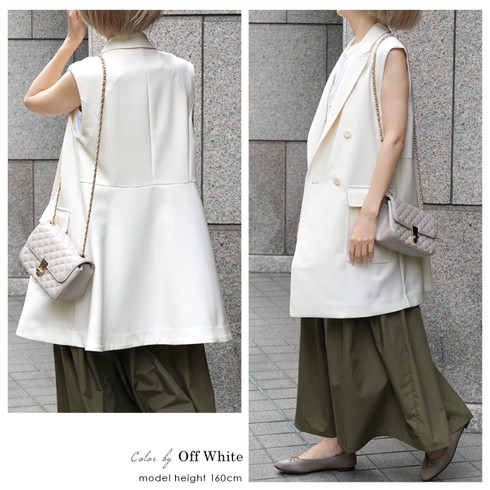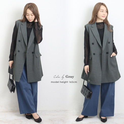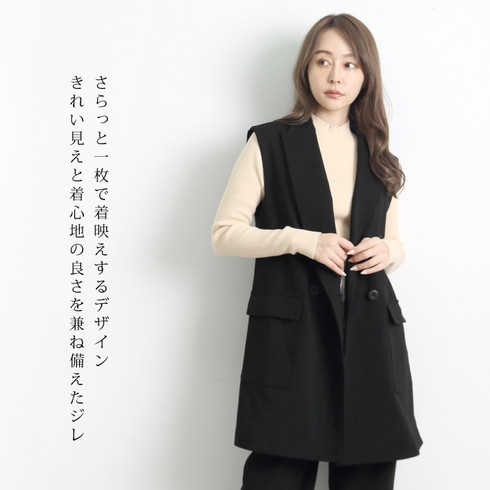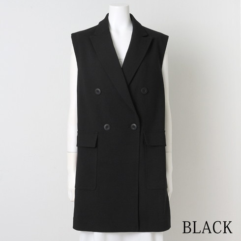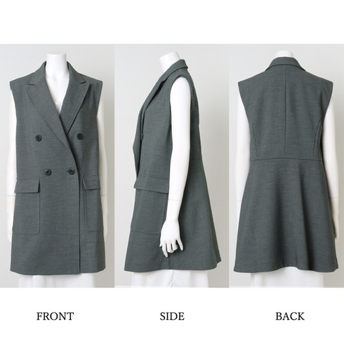 きちんと感のあるダブルの前開きジレです。
