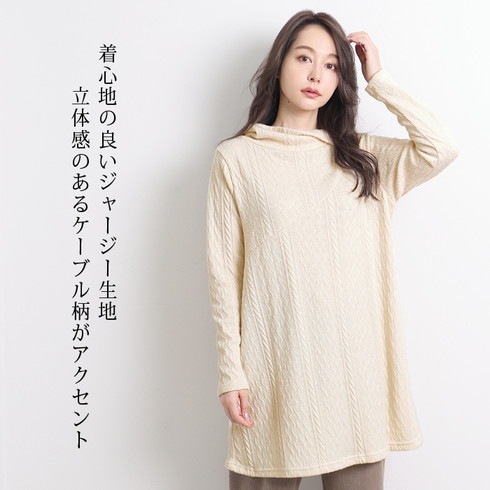 ケーブル柄のジャージーチュニックです。