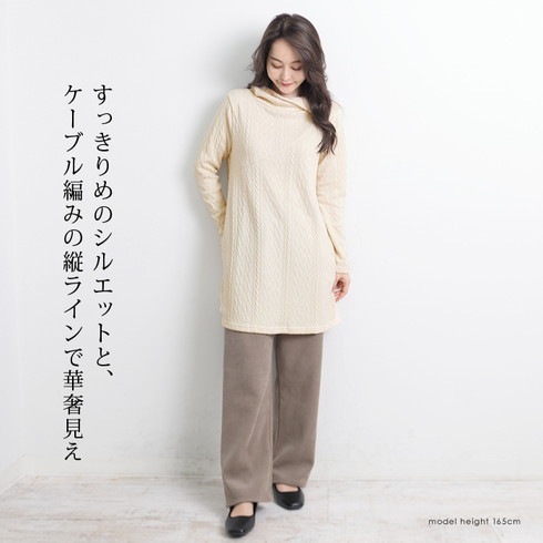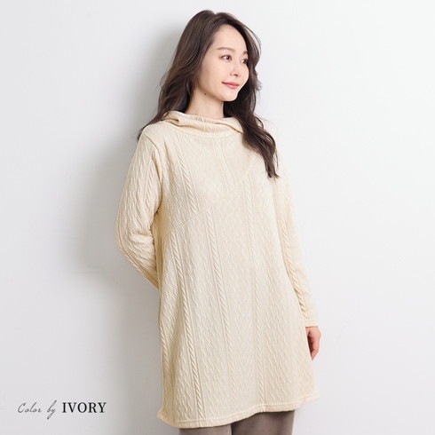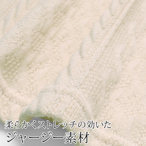 伸縮性のあるケーブル柄の生地は着心地抜群。