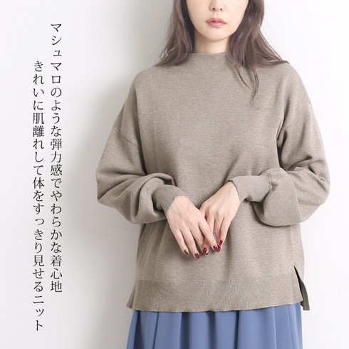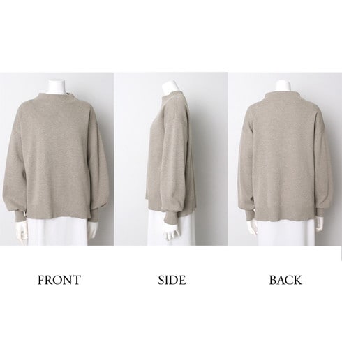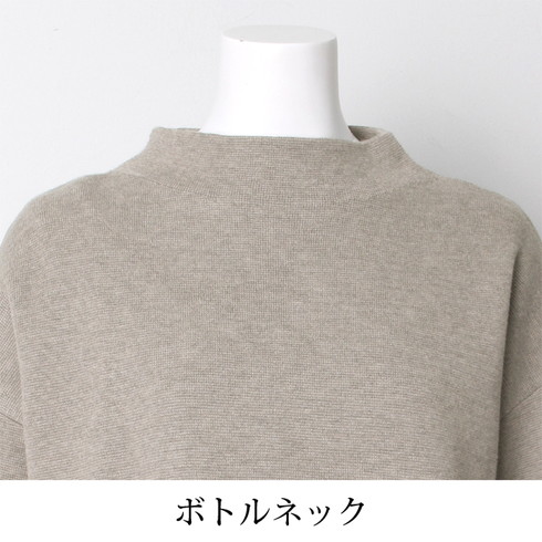 小顔効果のボトルネックとドロップショルダーで洗練度アップ。
