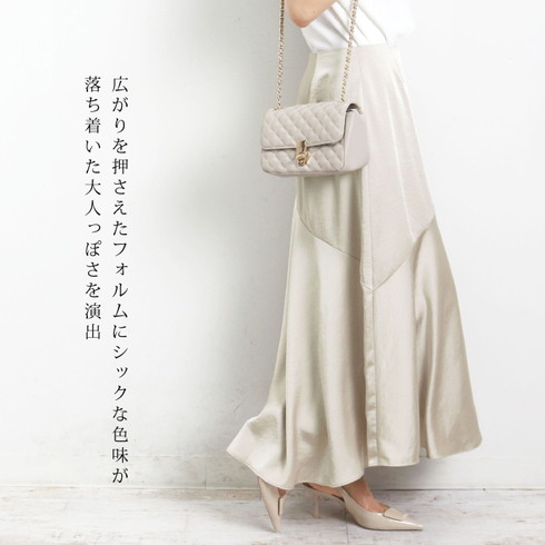 サテンの艶やかさが上品な大人のエレガントなスカートです。
