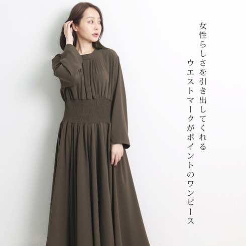 ウエストにシャーリングデザインですっきりスタイルアップ効果も◎。