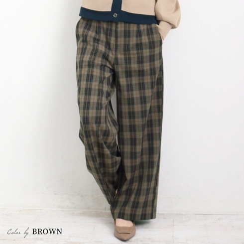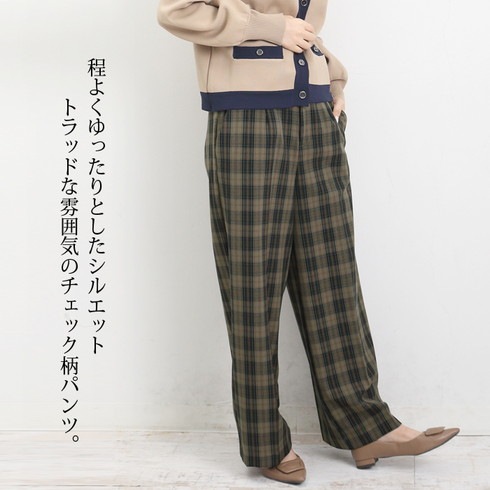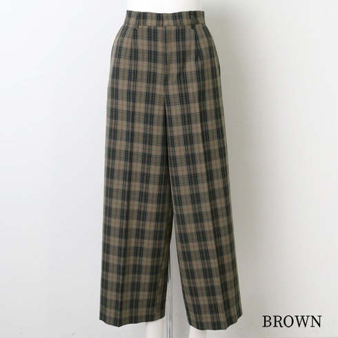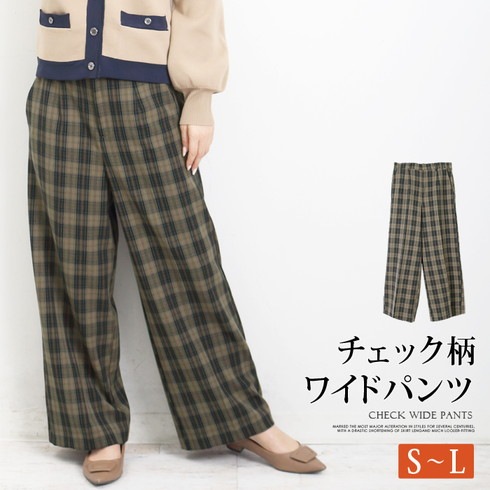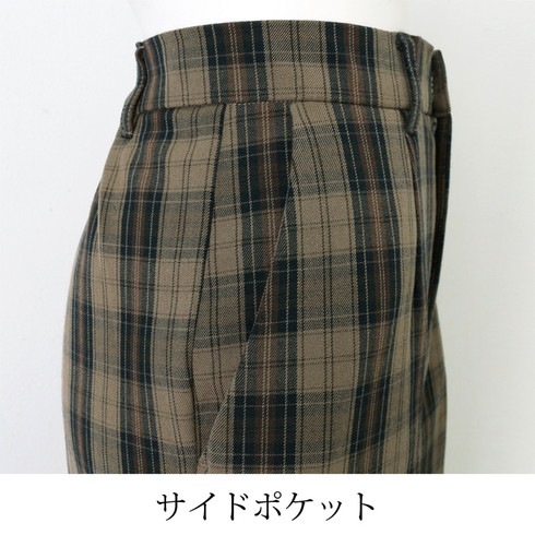 チェック柄がかわいいワイドパンツです。