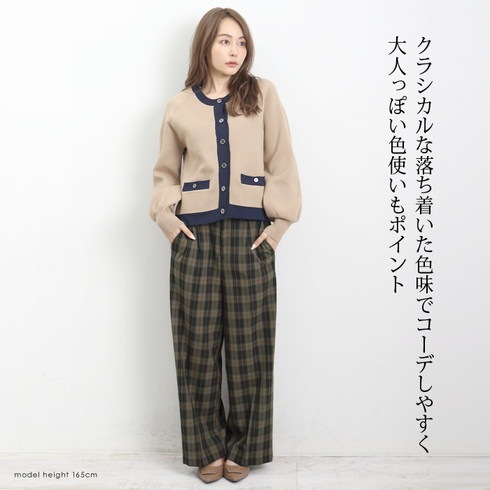 落ち着きのあるチェック柄が大人らしい着こなしを演出。