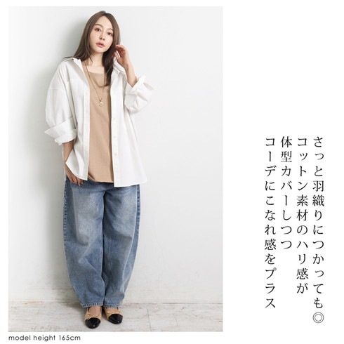 シャツアウトでおしゃれに体型カバー効果も期待できます。