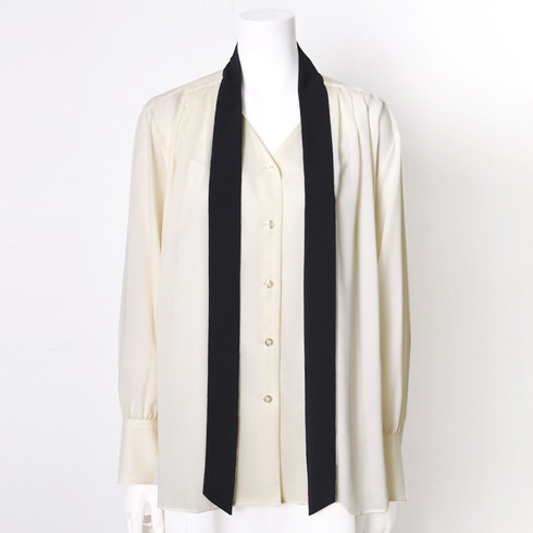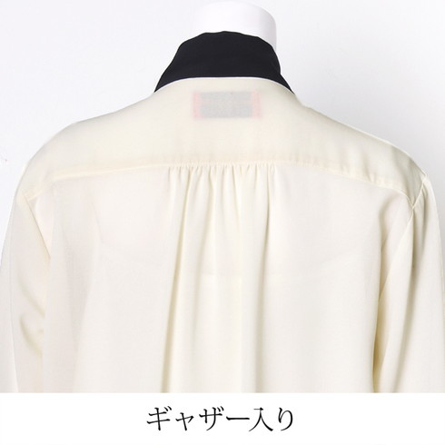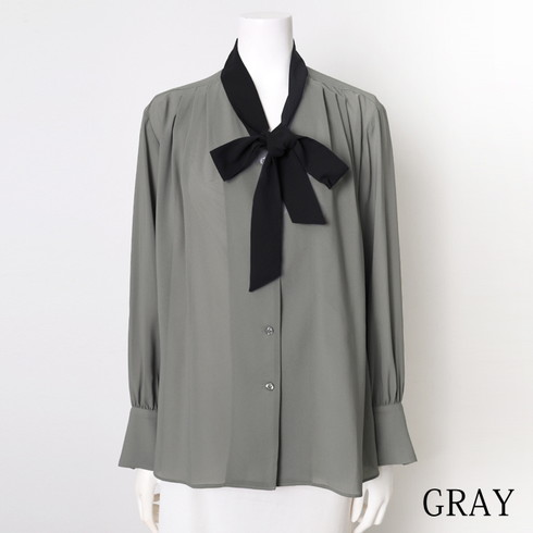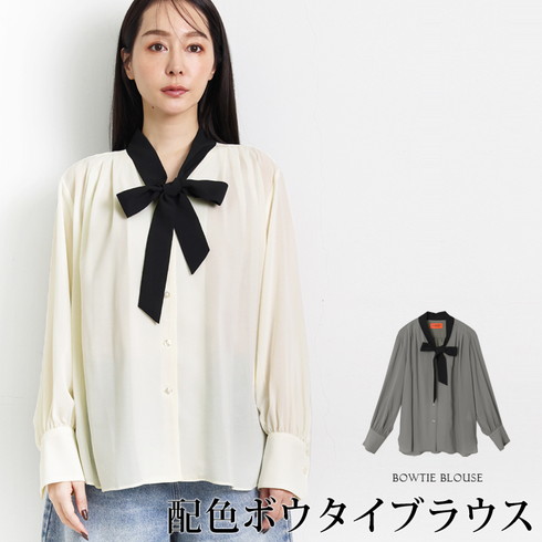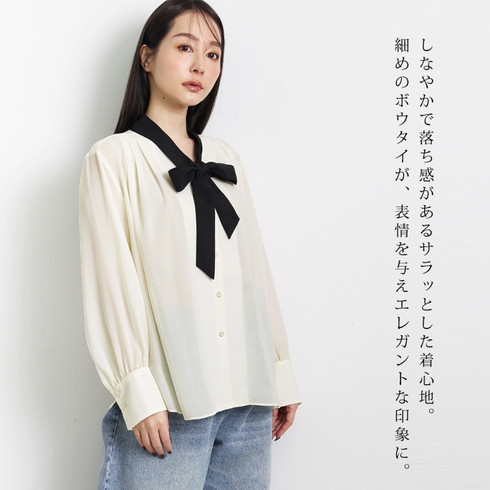 配色ボウタイがアクセントのブラウスです。