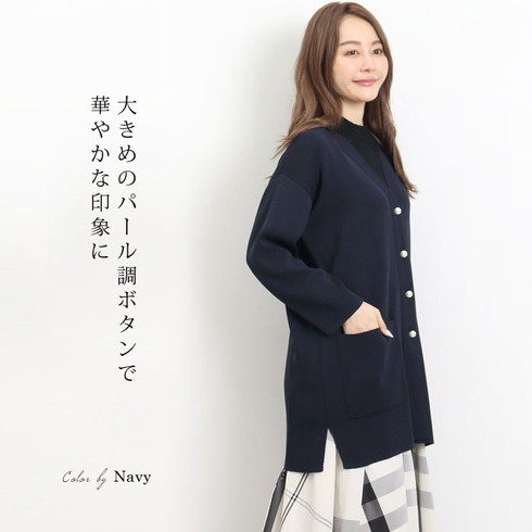 丸いパールボタンで女性らしい上品さと華やかさをプラス。