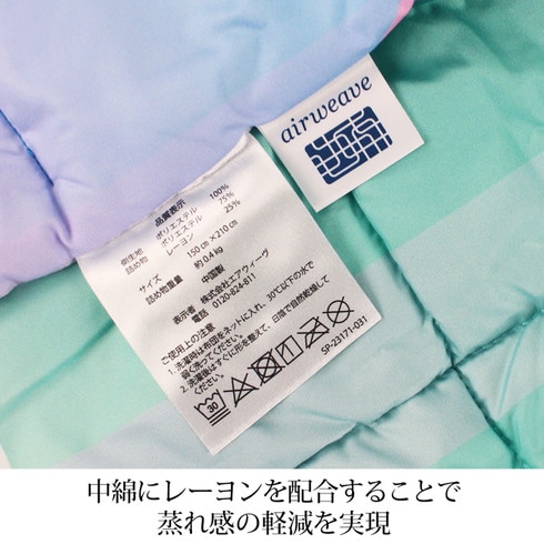 中綿にレーヨンを配合することで蒸れ感の軽減を実現。