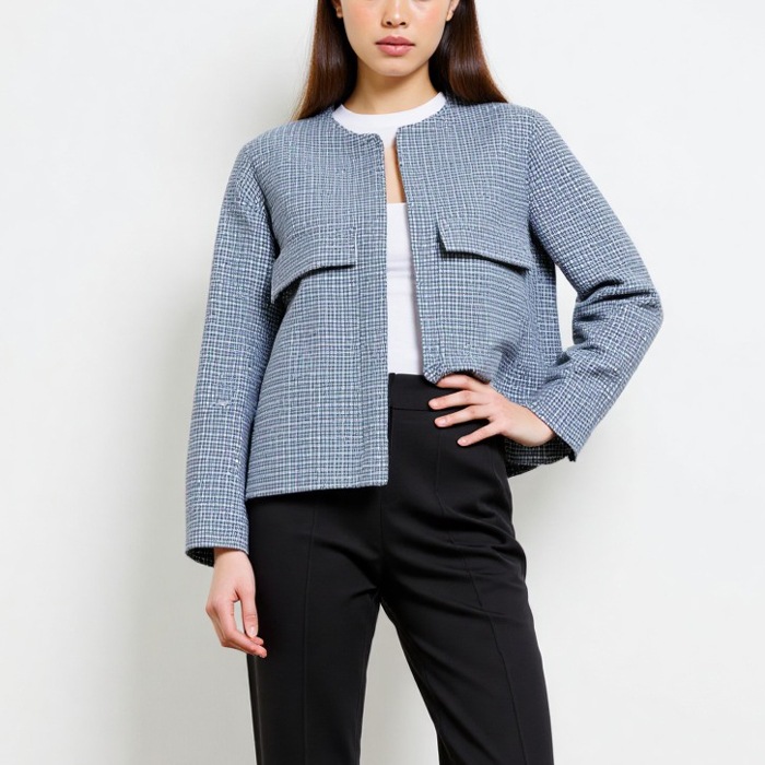 きちんと感と華やかさがある大人の女性のための万能ジャケットです。