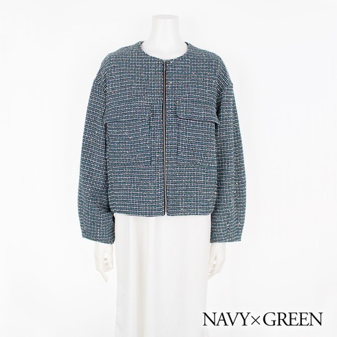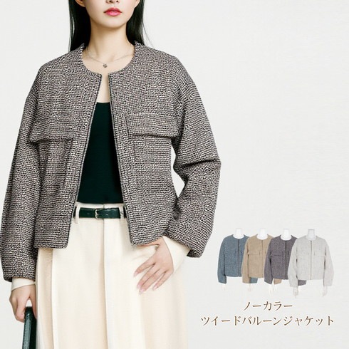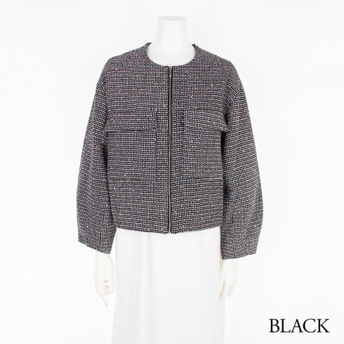 ツイード素材のノーカラージャケットです。