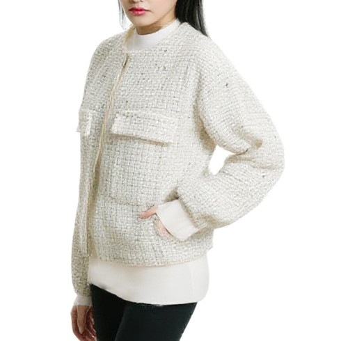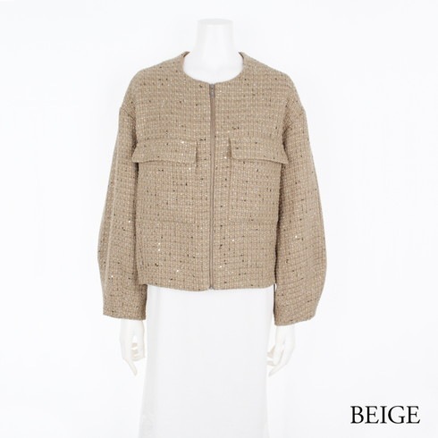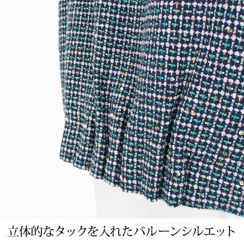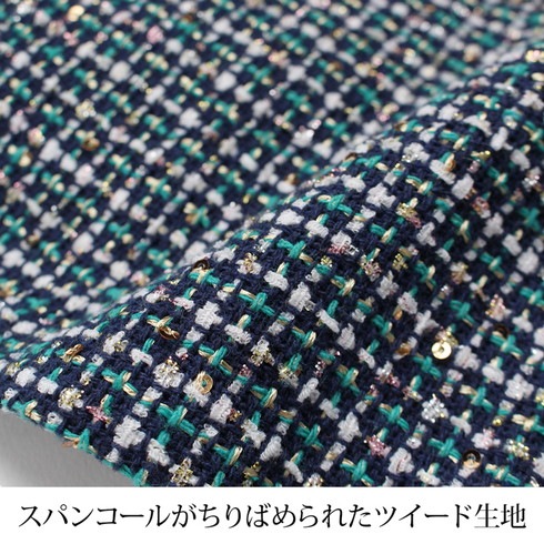 スパンコールがちりばめられたツイード素材はきれいめにもカジュアルにも◎。