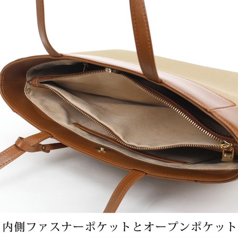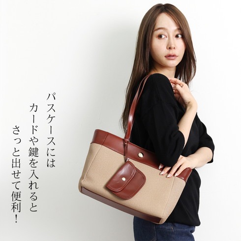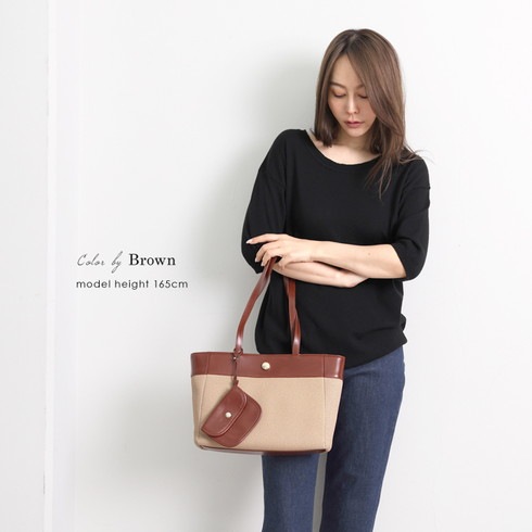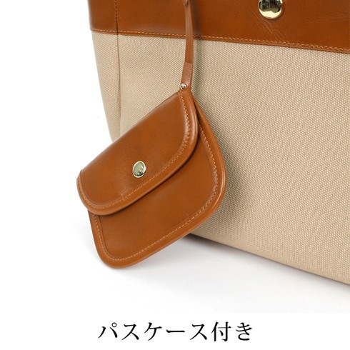 軽くて丈夫な帆布に高級感ある牛革をあしらったバッグ。