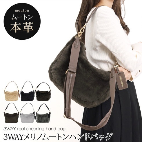 メリノムートンの3WAYで使用できるハンドバッグです。