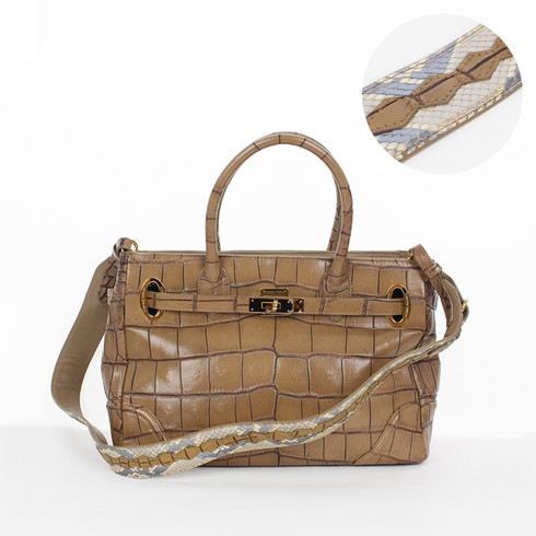 腹部の革を中央に配し、腑模様がバッグの中央から左右対称に