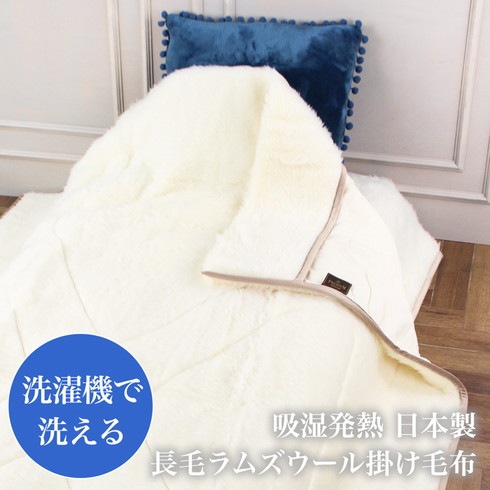 日本製ラムズウール掛け毛布●寝具 ブランケット 羊毛 ラムウール 布団 吸湿 発熱 保温 無地 洗える 快眠 シングル セミダブル アイボリー TV通販で大人気