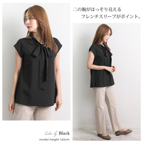 フレンチスリーブのボウタイブラウスです。