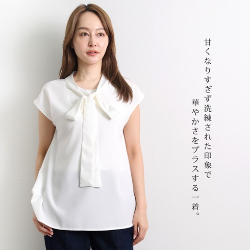 品がありきちんと感を演出するボウタイデザインで、