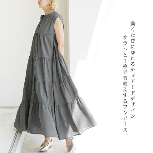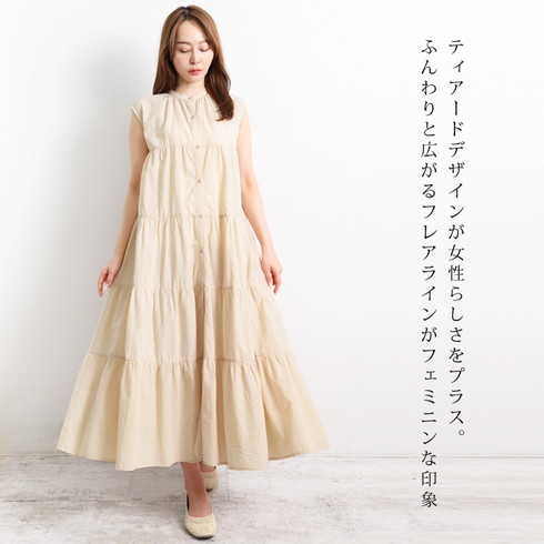 たっぷりのティアードがボリューム感を出しフェミニンな印象に。