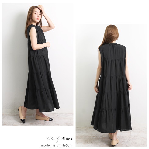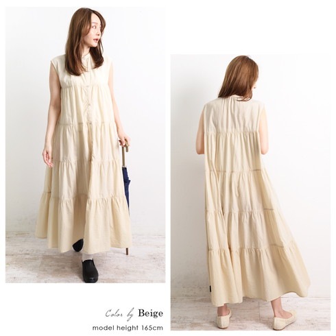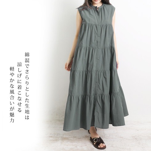 ナチュラルなコットン素材のマキシ丈ワンピースです。