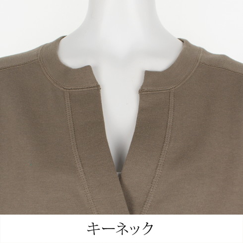 すっきり見えするデコルテラインと丈感でスタイルアップ効果も◎。