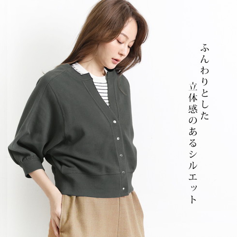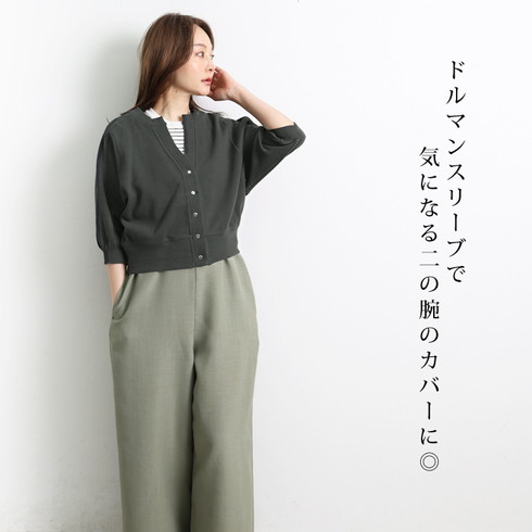 さらりと羽織れる半袖ドルマンカーディガンです。