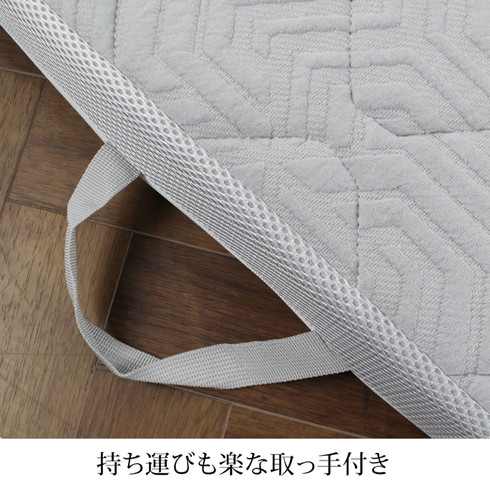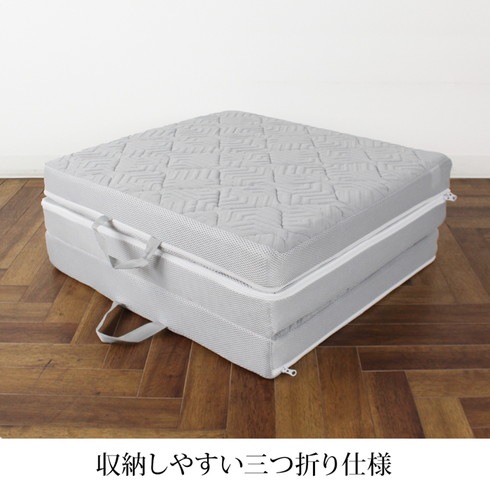 三つ折り仕様で収納もしやすく、持ち手付きで持ち運びも楽らく。