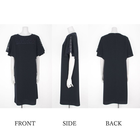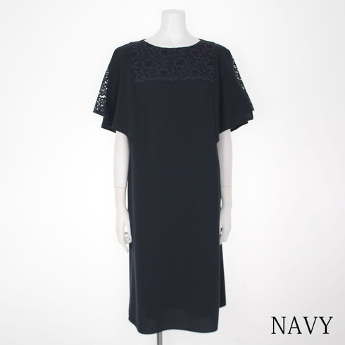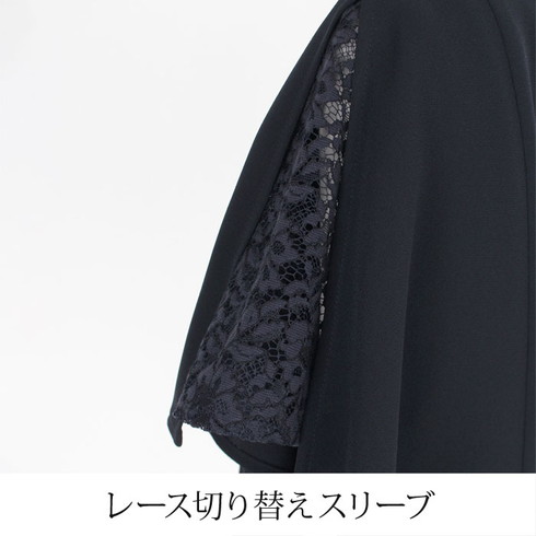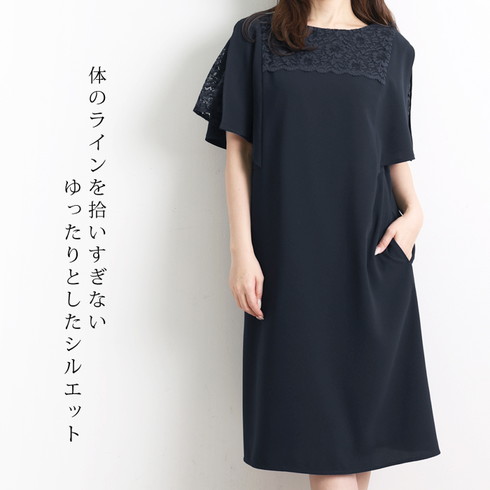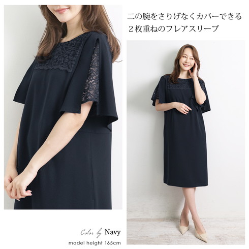 袖はフレアスリーブで二の腕をカバーしレースで抜け感を表現。