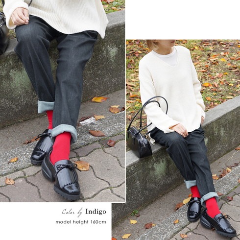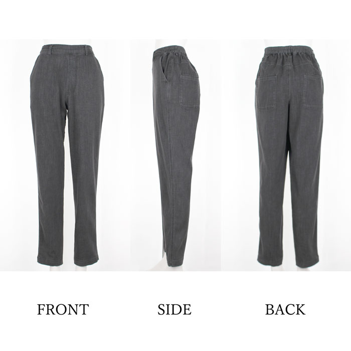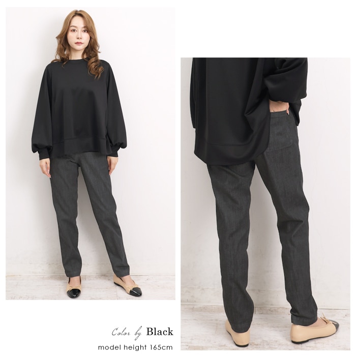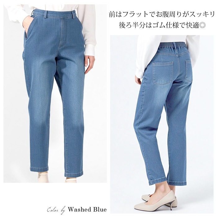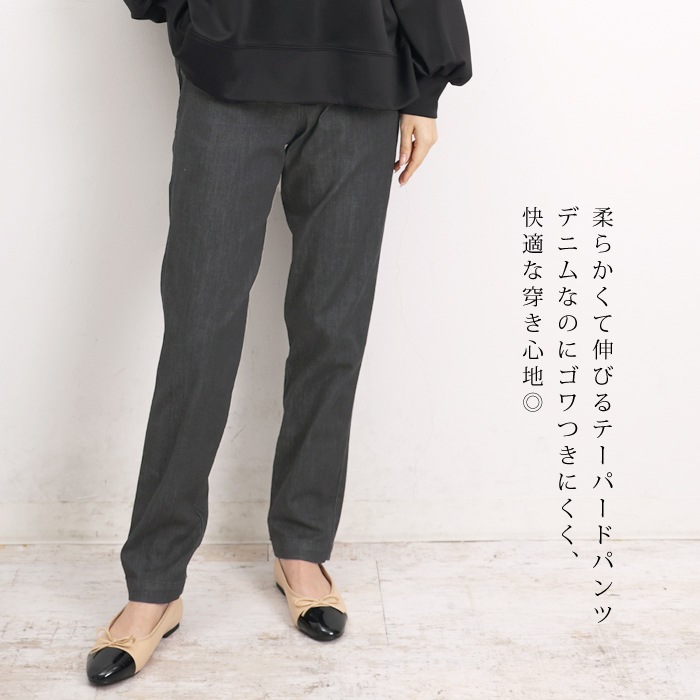 腰回りはゆったり、裾に向かって細くなるテーパードラインで美脚効果◎。