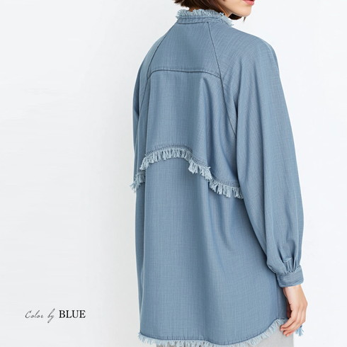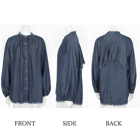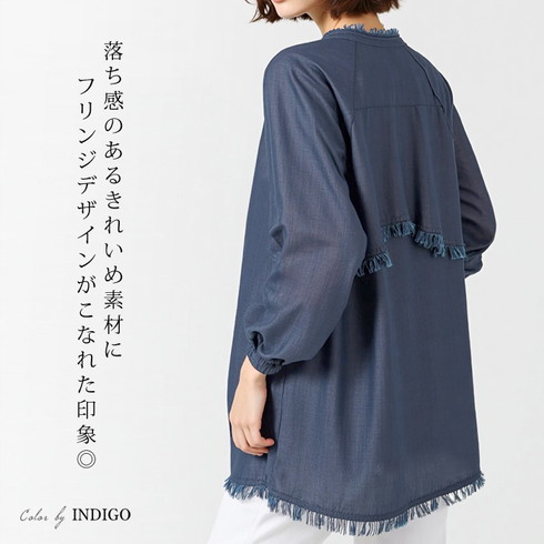 背中のヨークにはフリンジ加工をしてカジュアル感をプラス。